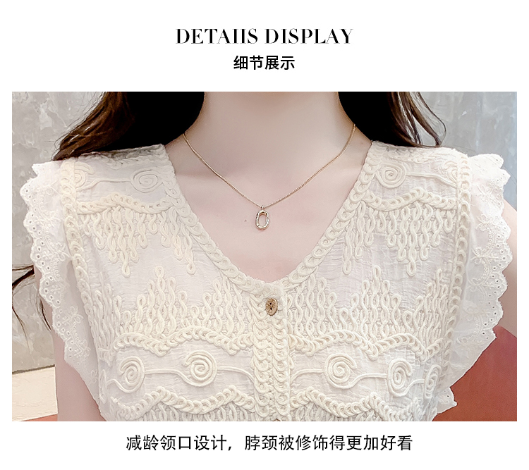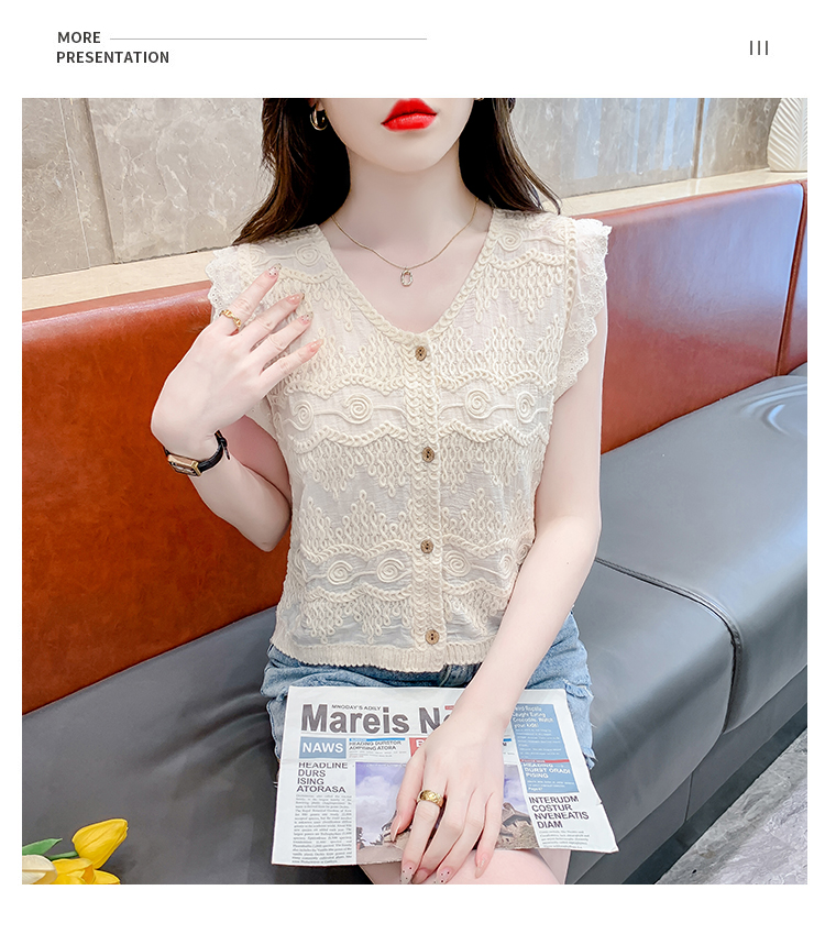 别致v领花边小飞袖针织背心夏新款绣花蕾丝百搭无袖开衫上衣 数量