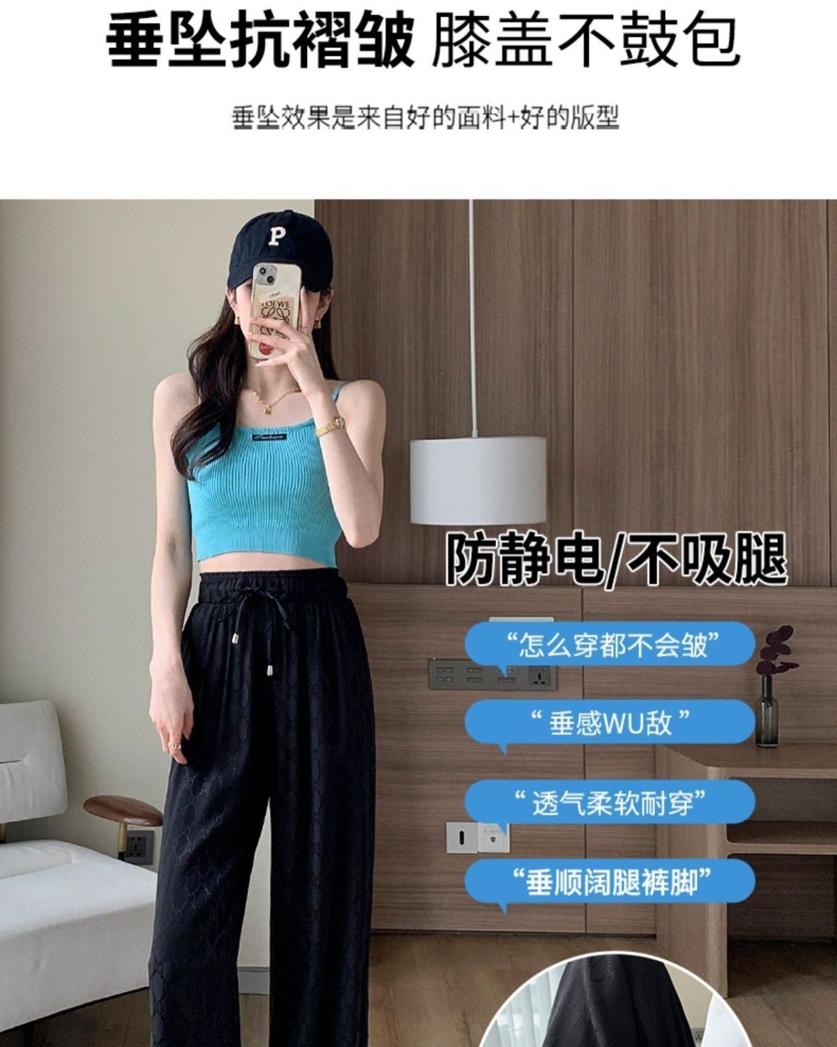 加大码冰丝阔腿裤女夏季薄款高腰垂感直筒宽松防晒提花休闲九分裤