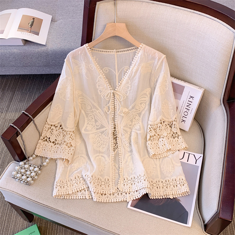 复古镂空钩花外搭防晒空调衫女2024年夏装新款宽松大码开衫短外套