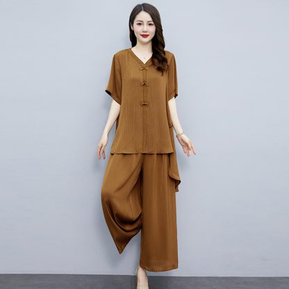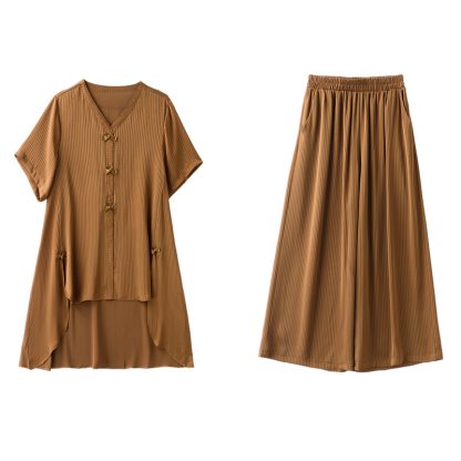 夏季女装新款时尚民族风盘扣装饰阔腿裤大版套裤