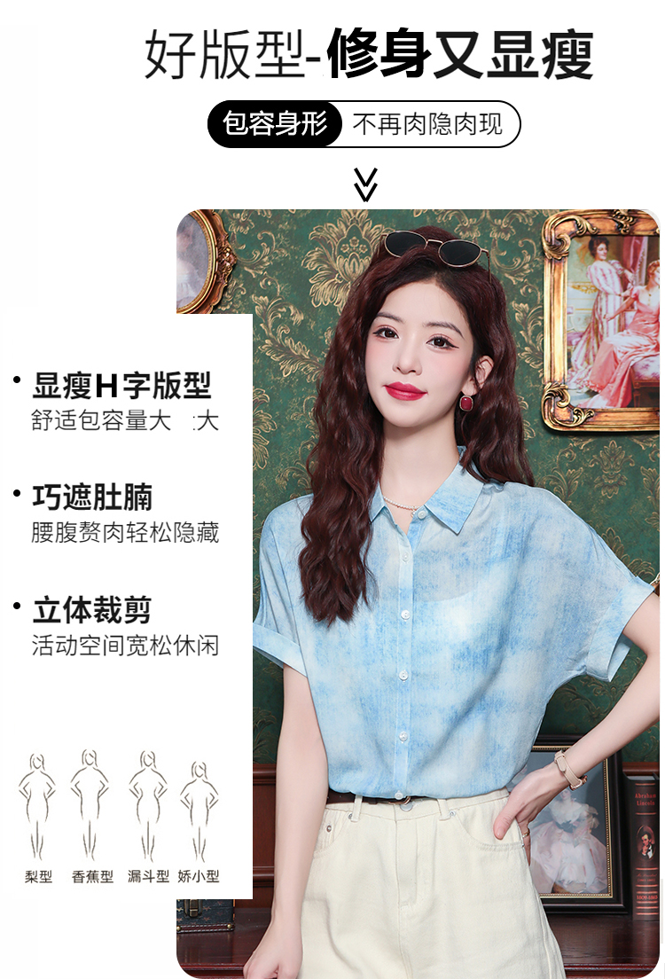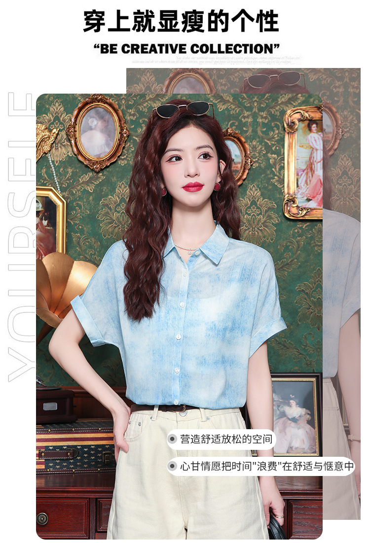 夏季简约气质水墨晕染通勤衬衣港风设计感百搭洋气衬衫 数量