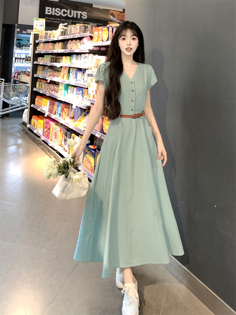 夏日莫利纳法式夏气质清凉排扣设计高级感收腰显瘦连衣裙