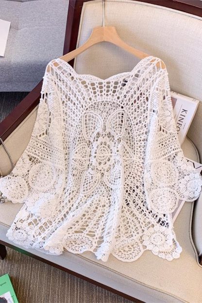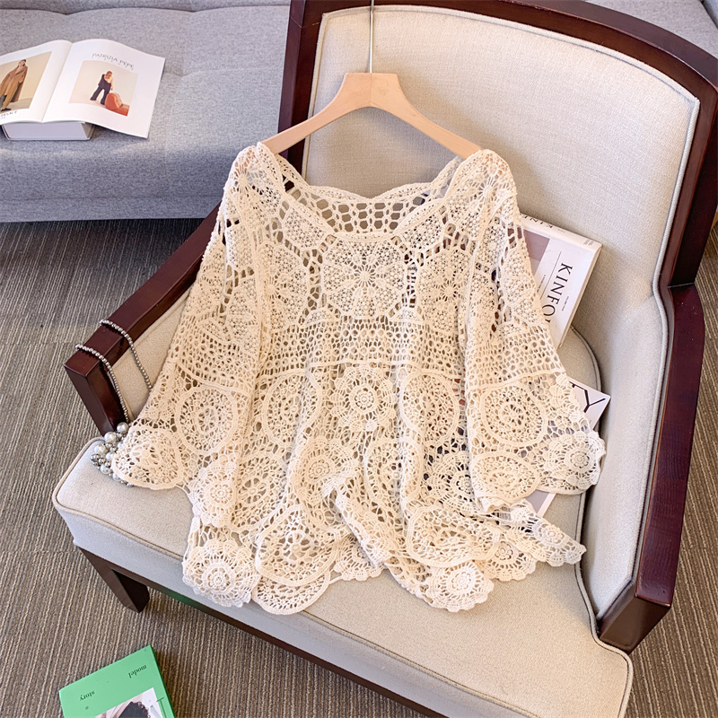 大码胖mm夏季新款复古针织衫女外搭宽松套头罩衫镂空百搭防晒上衣 数量