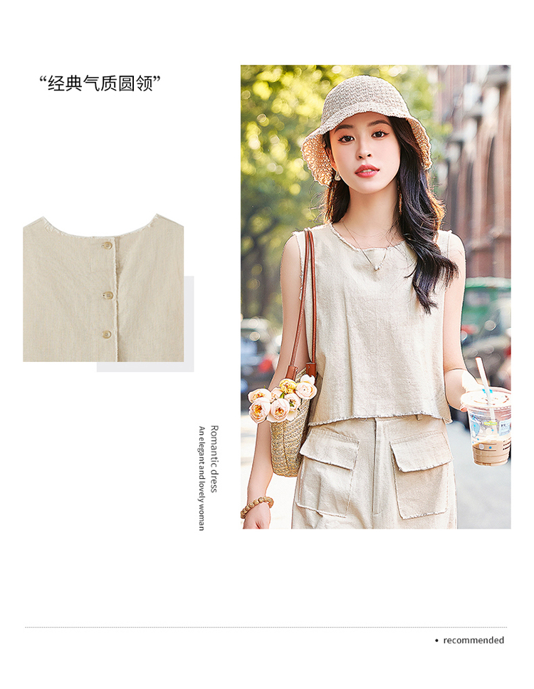 棉麻套装女2024夏装新款无袖套头上衣直筒休闲阔腿裤两件套 数量