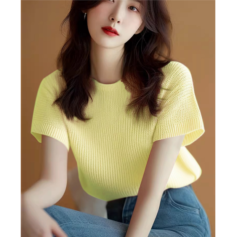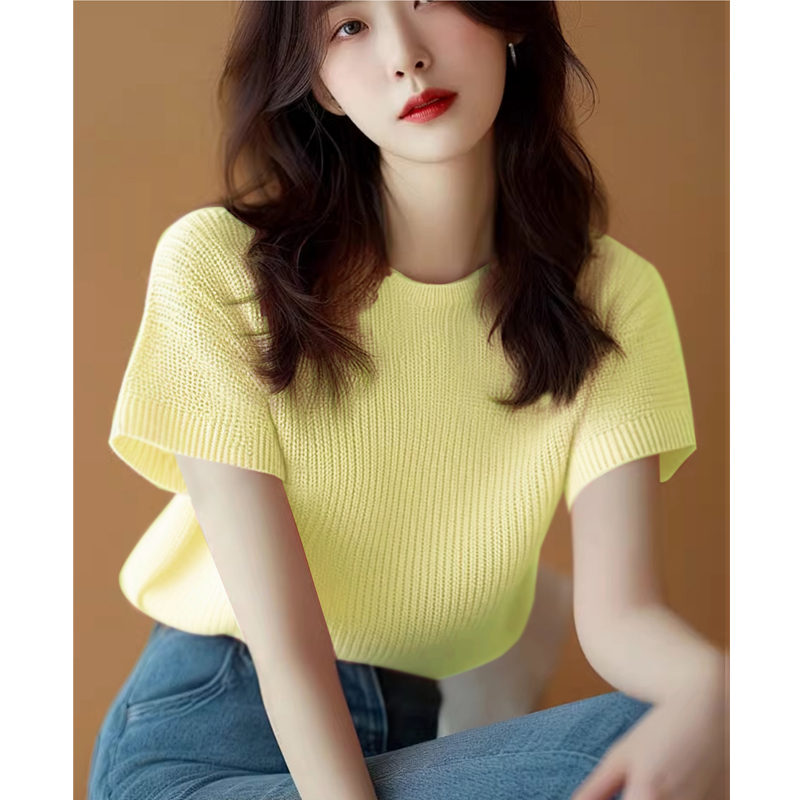 现货粉色针织短袖女2024新款夏季别致独特上衣超好看法式修身显瘦 数量