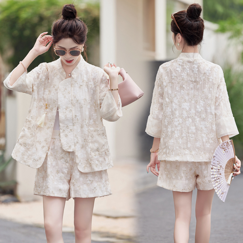 新中式套裙女2024年夏季新款女装时尚休闲牛仔两件套