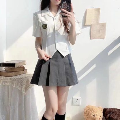 西装灰色百褶裙, 衬衫(徽章)+黑长领带, 西装卡其百褶裙, 衬衫(徽章), 衬衫(徽章)+黑蝴蝶结