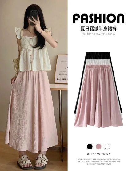 粉色裙裤女夏天薄款小个子飘飘百褶a字半身裙高腰显瘦垂感阔腿裤 数量