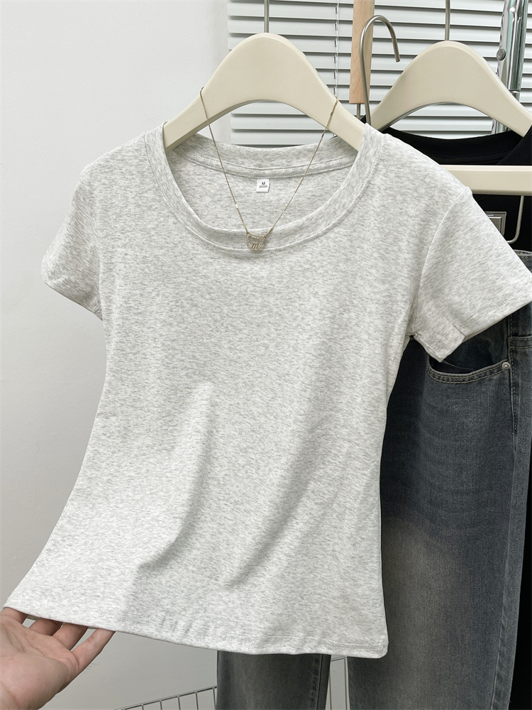 纯棉收腰修身短袖T恤女垂感女圆领短款上衣辣妹显瘦T恤潮 数量