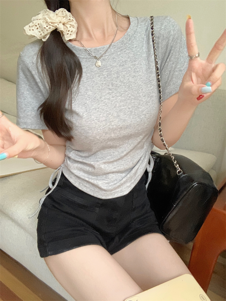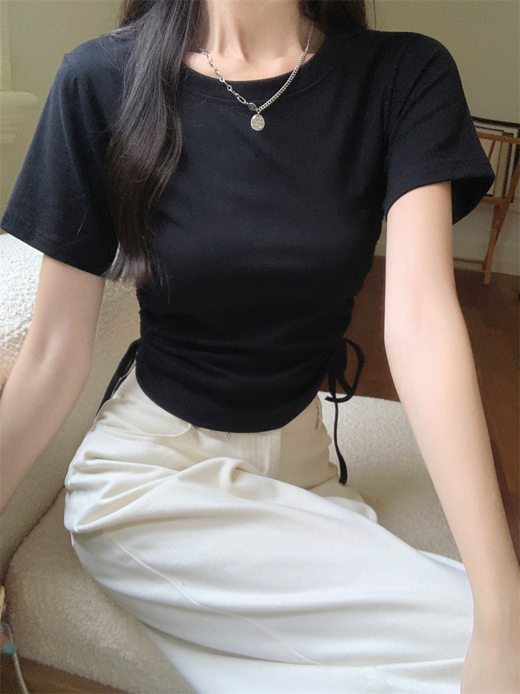 纯欲辣妹抽绳短袖T恤女夏季新款韩版设计感修身显瘦短款上衣 数量