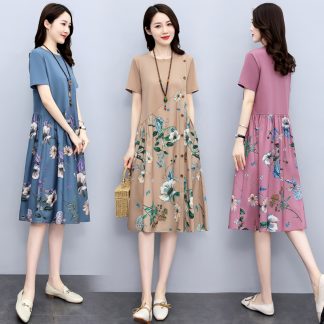 GJC6255配项链,棉麻文艺宽松大码印花连衣裙女,2023夏季新款