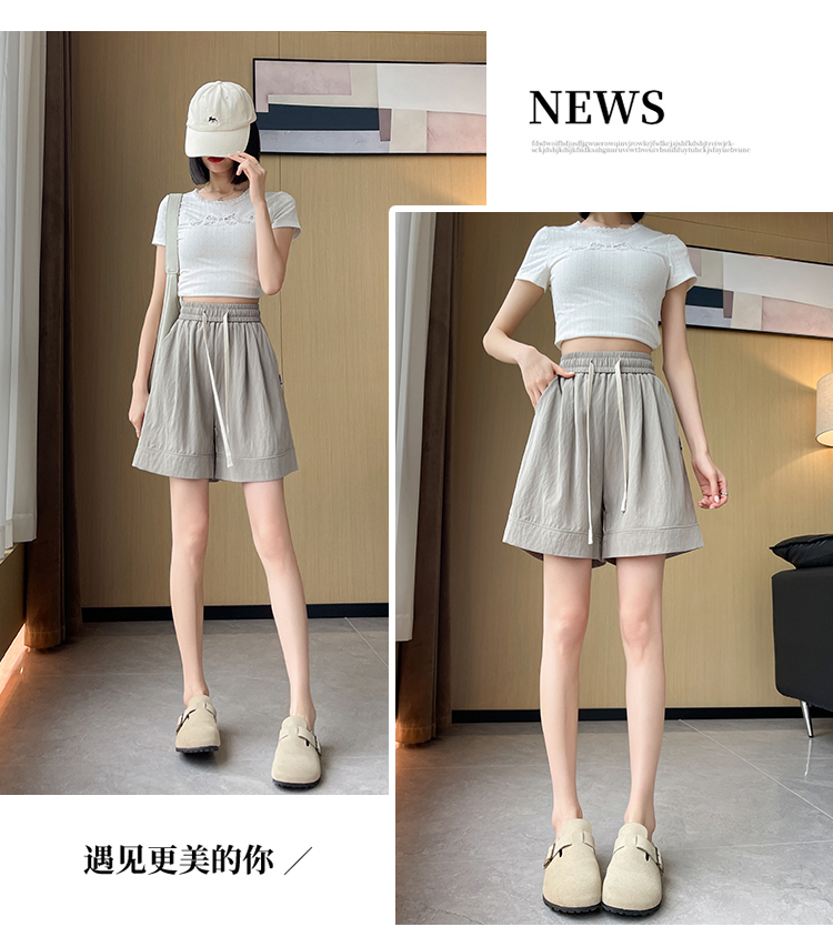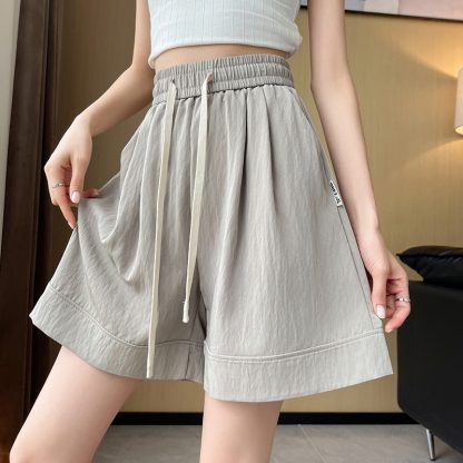 2024夏季冰丝肌理五分短裤女高腰薄款宽松直筒皱皱凉凉休闲裤