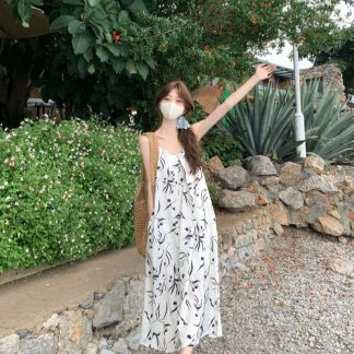 价韩版宽松休闲清冷碎花吊带连衣裙夏季长裙