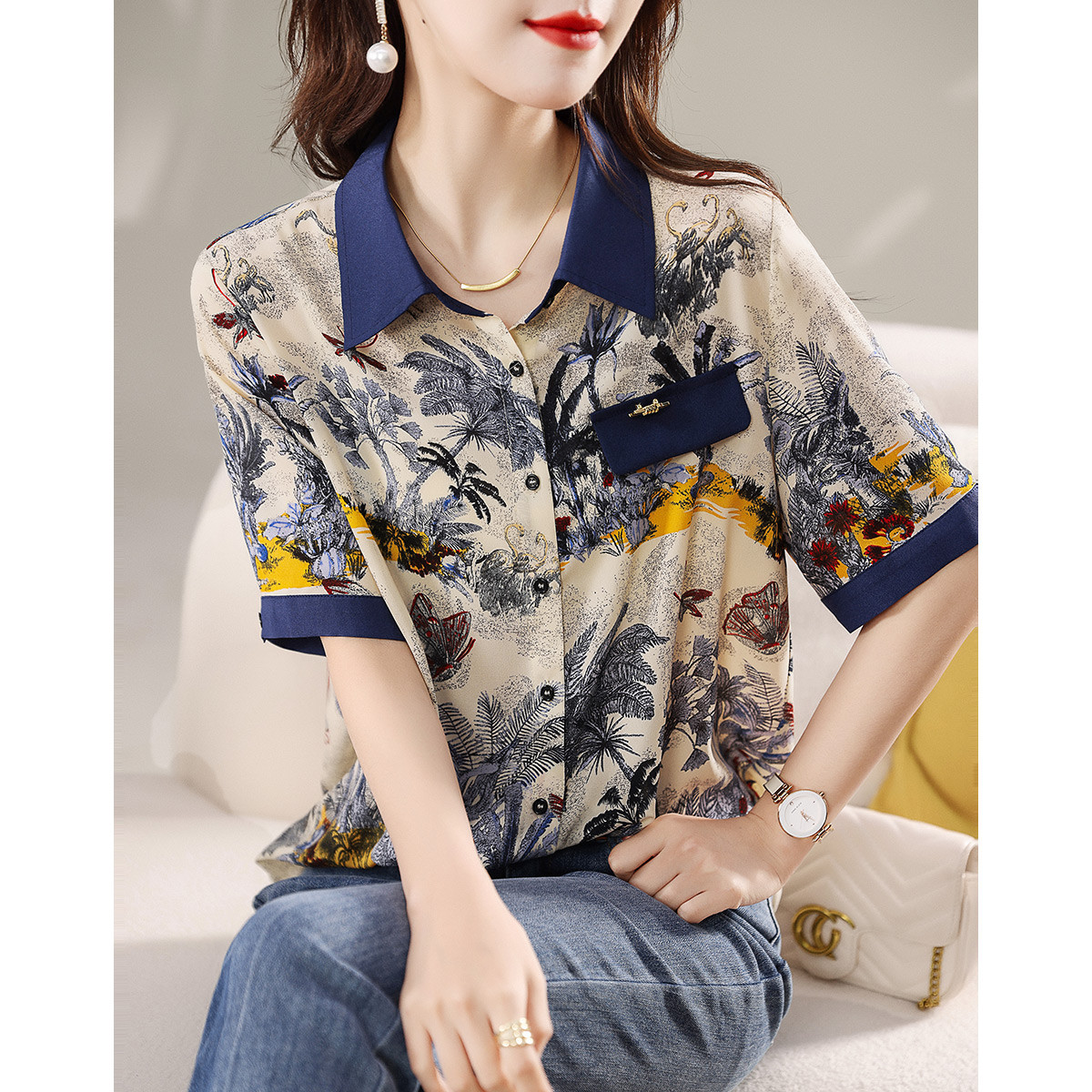 2024夏新款轻奢气质高级感翻领百搭拼接衬衫港风印花衬衣夏季休闲 数量