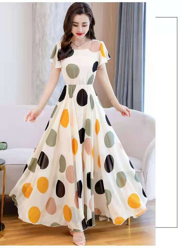 2024新款夏流行裙子长款收腰大摆波点复古长沙滩裙海边裙 数量
