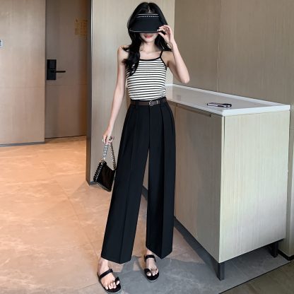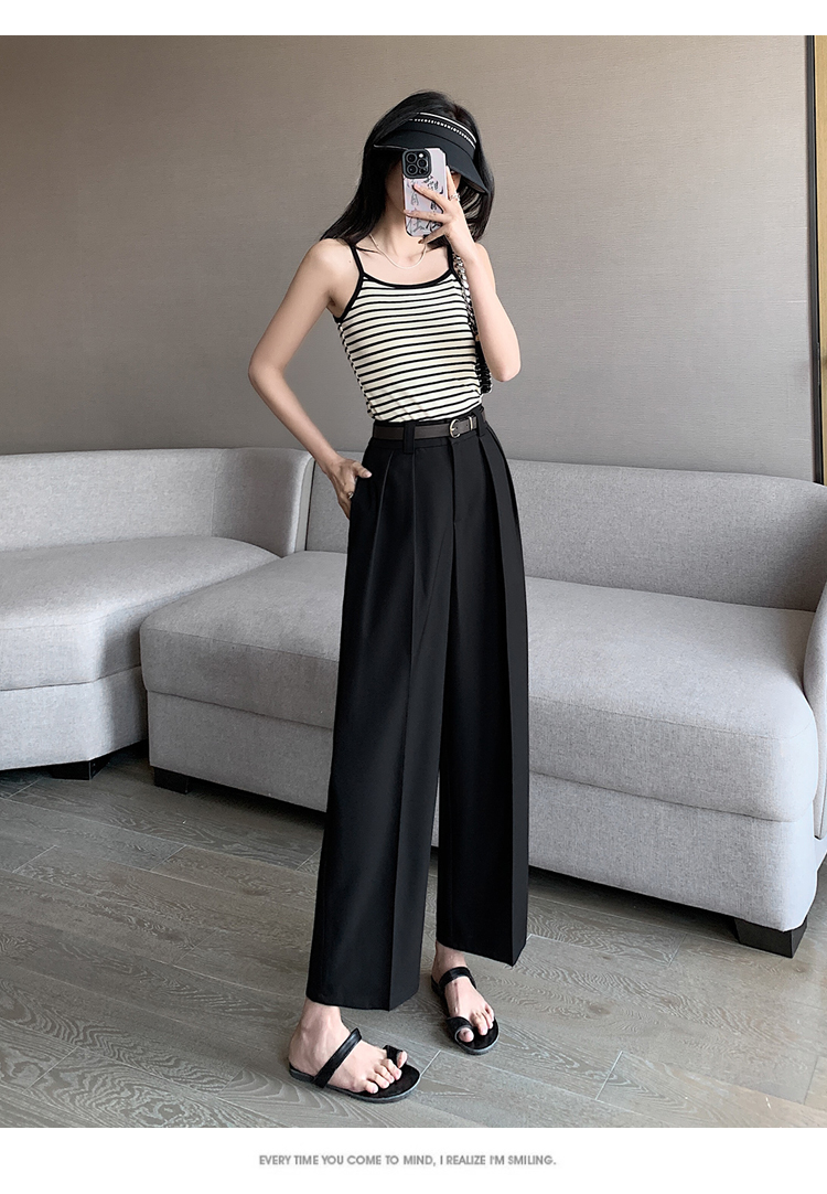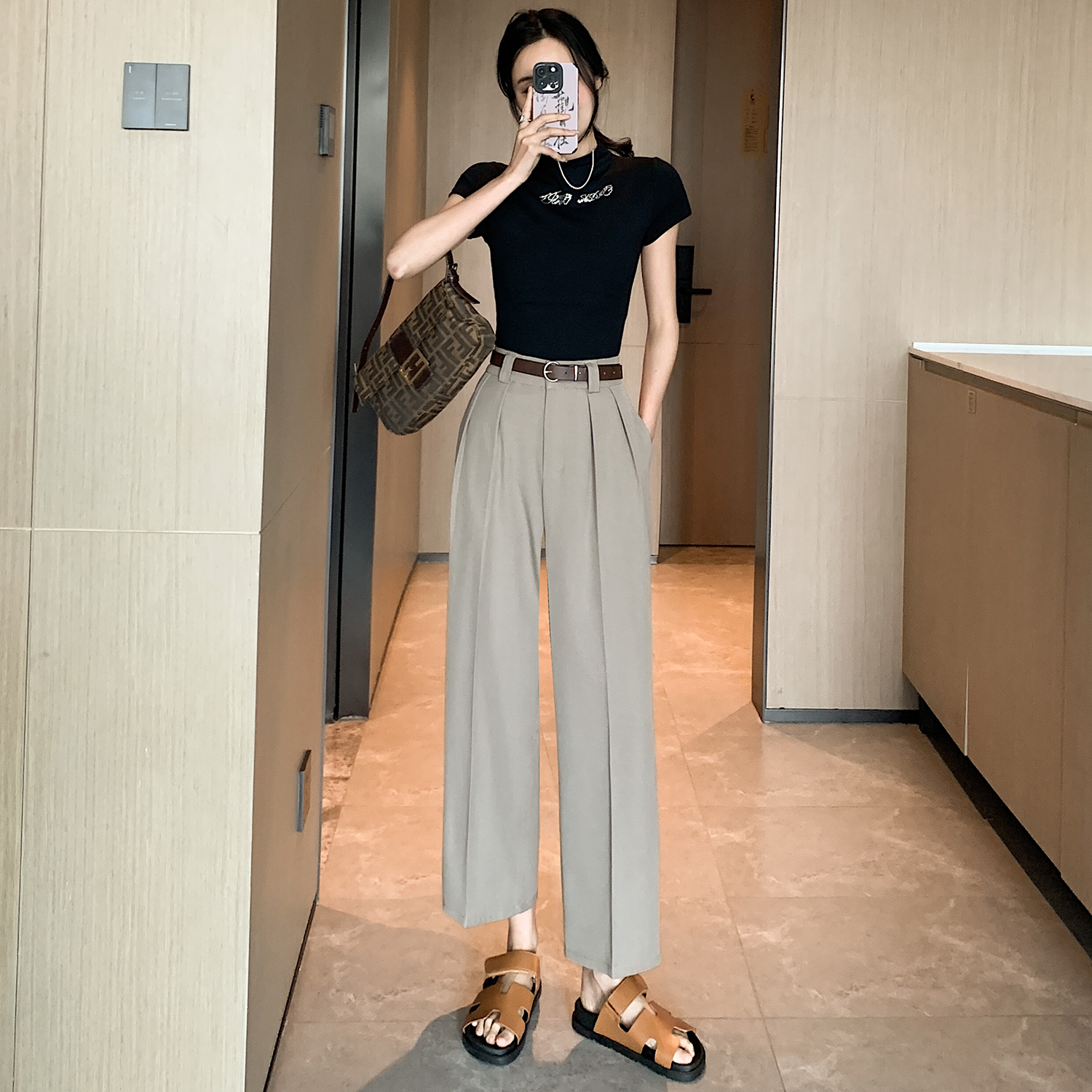 66066大码女装显瘦遮肉胖MM夏季高腰直筒休闲西装九分裤女