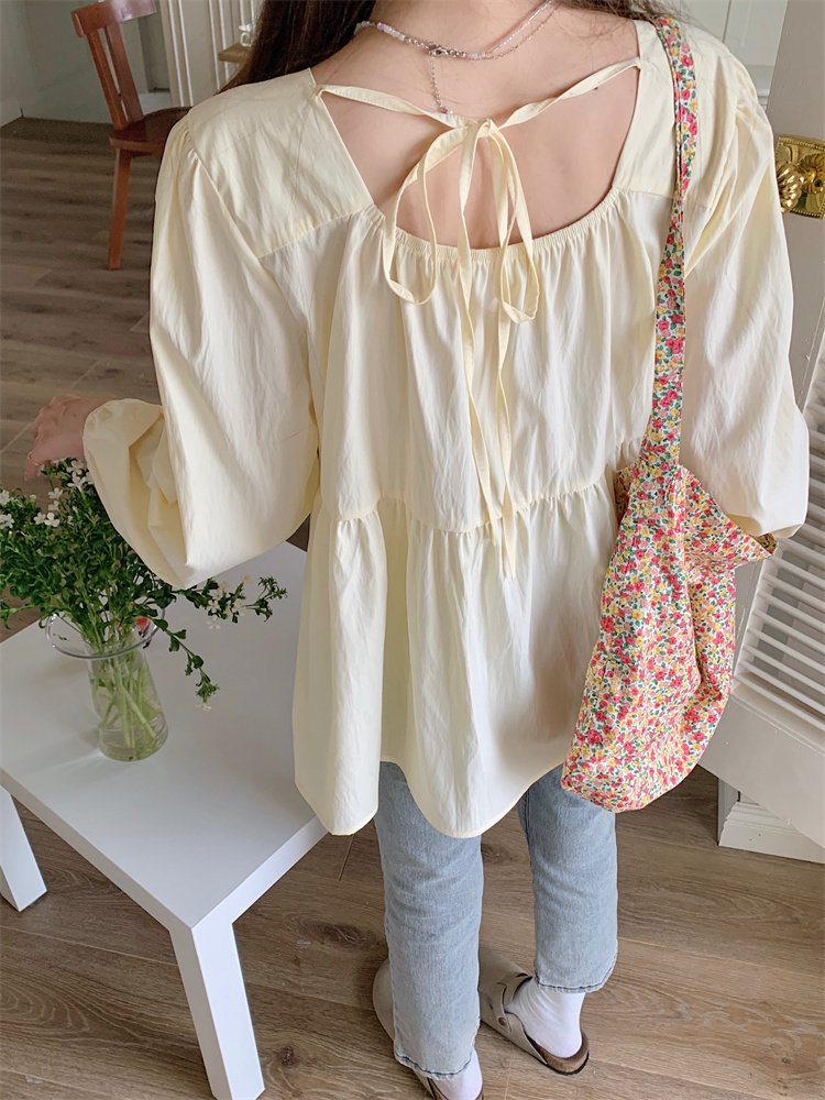 66212大码法式薄款长袖甜美方领正肩短袖衬衫女收腰显瘦上衣 数量